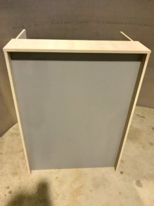 Reception Desk- Point of sale -800x 550mmdepth 1120mm high 900mm to bench top seasoned oak textured finish grey bentop grey front panel